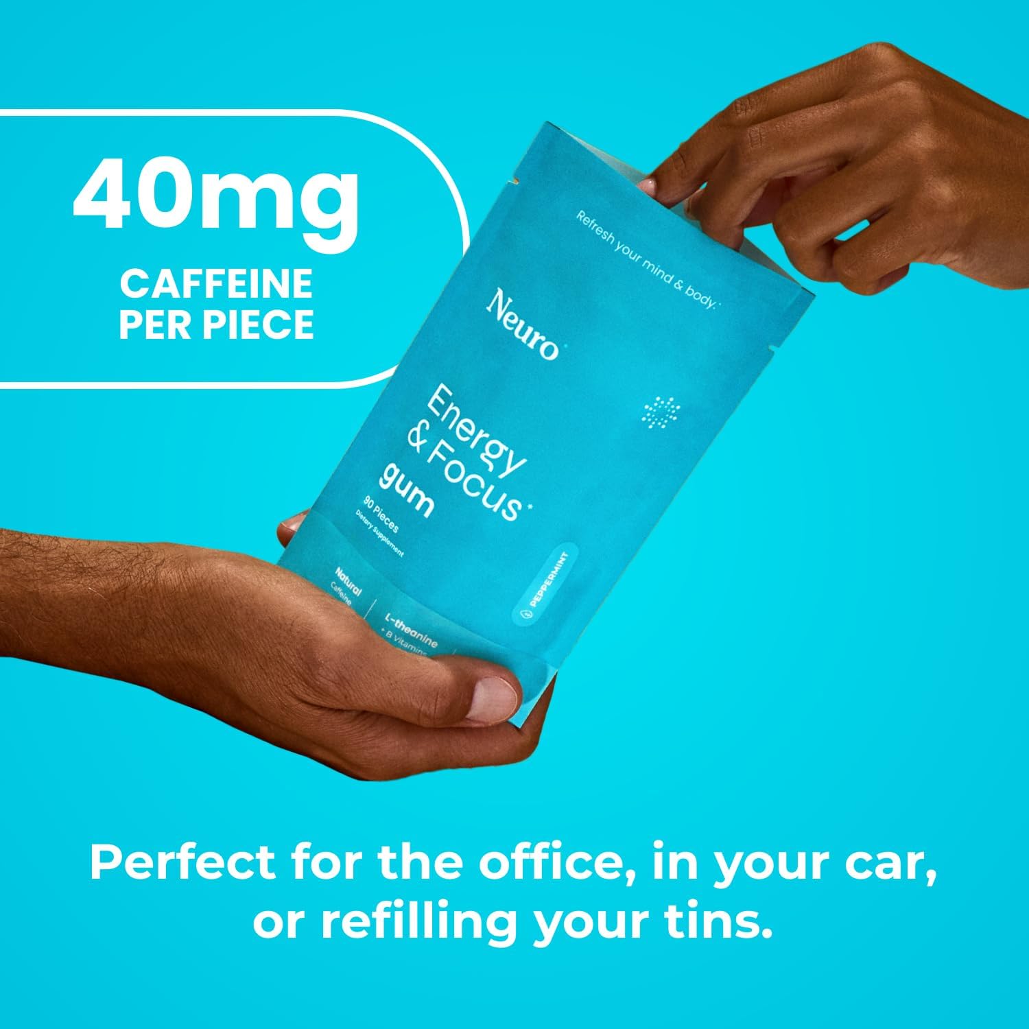 Each gum contains 40mg of natural caffeine for a smooth energy boost.