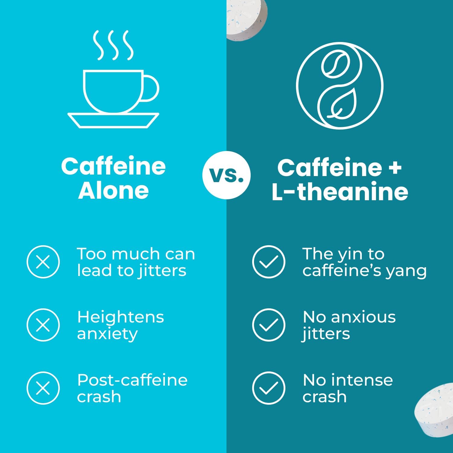 Power through your day with 40mg natural caffeine combined with L-Theanine for smooth, balanced energy. This fast-acting gum delivers enhanced focus, mental clarity, and alertness without jitters or sugar crashes. Vegan, sugar-free, and refreshing peppermint flavor in every chew.